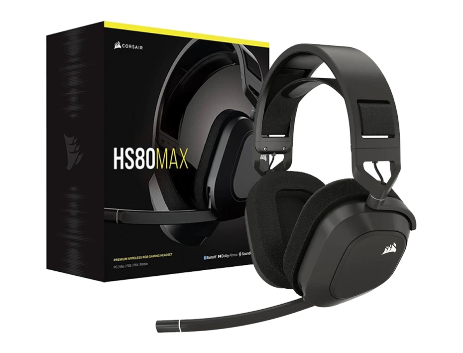 Auricular Corsair Hs80 Max Wireless, Con Microfono, Control De Volumen, Almohadillas Suaves, Color Steelgray