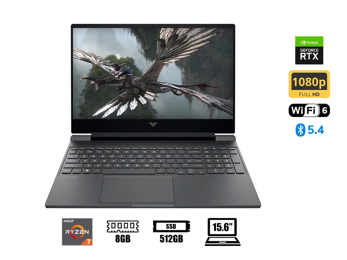 Laptop Hp Ryzen 7-7445hs Victus 15-fb3019la Gaming (bt4f6la#abm) 15.6" Fhd 144hz, Ram 8gb, Ssd 512gb, Rtx 3050 4gb, S/s, Mica Silver