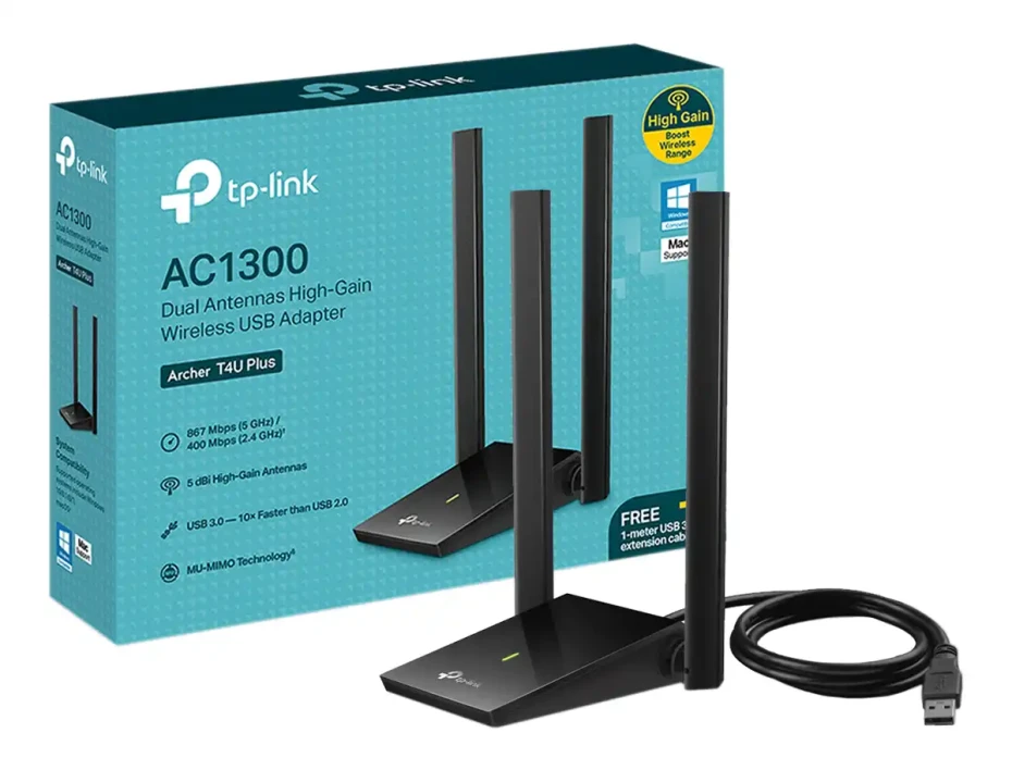 Adaptador Usb Inalambrico Tp-link T4u Plus Ac1300 Doble Antena (tl-archer T4u Plus)