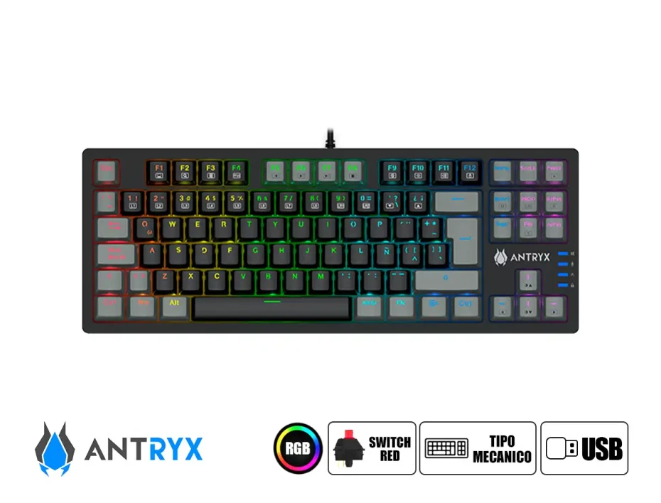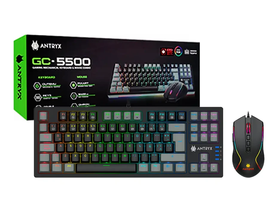 Combo 2 En Uno Antryx Chrome Storm Gc-5500 (agc-5500kre-sp) Switch Red, Led Rgb, 9 Botones, Negro