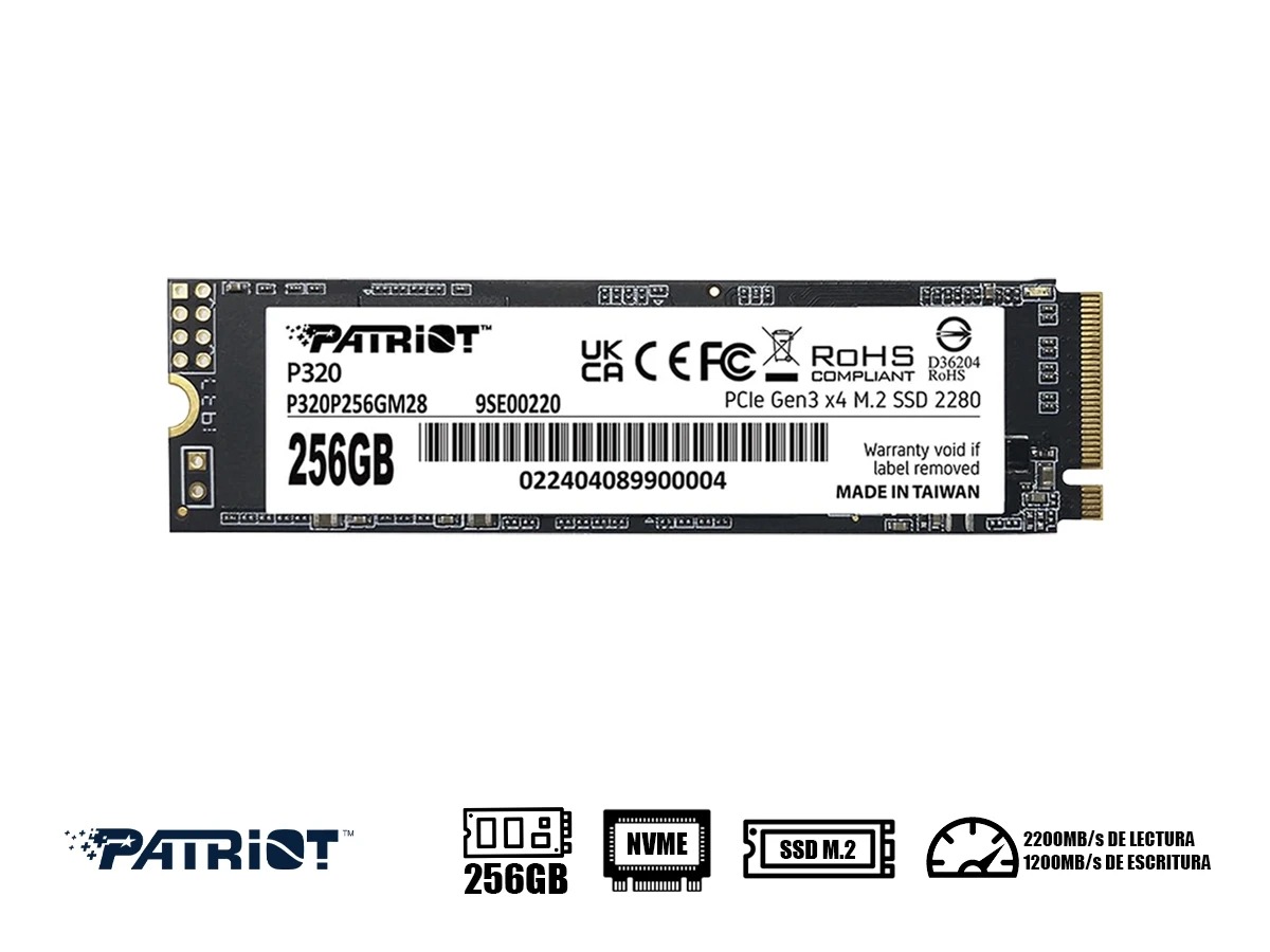 Disco Solido Ssd M.2 Pcie Patriot 256gb P320 2280, Gen3, Nvme, Unidad Interna De Estado Solido, Para Pc, Laptop, Lectura 3000mb/s (p320p256gm28)