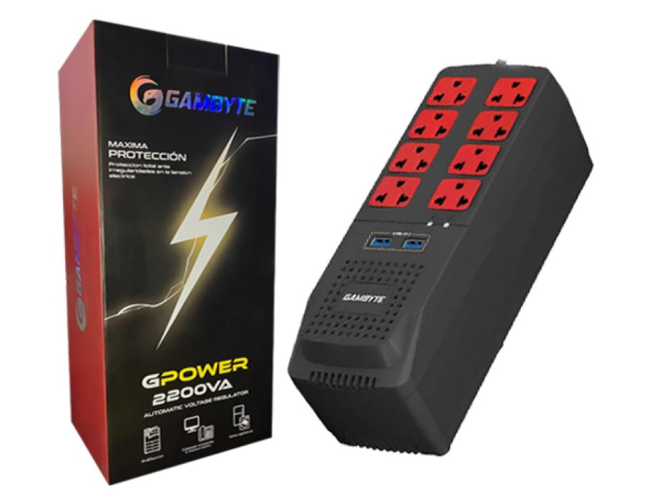 Protege tus dispositivos de mayor consumo con el estabilizador Gambyte 2200VA, diseñado para brindar potencia y seguridad en entornos exigentes. Con una capacidad de 2200VA, este modelo asegura un suministro de energía confiable, manteniendo el rendimiento de equipos críticos como servidores, sistemas de red y equipos de oficina. El Gambyte 2200VA cuenta con 8 tomas de salida que permiten conectar múltiples dispositivos de forma segura y eficiente, además de 2 puertos