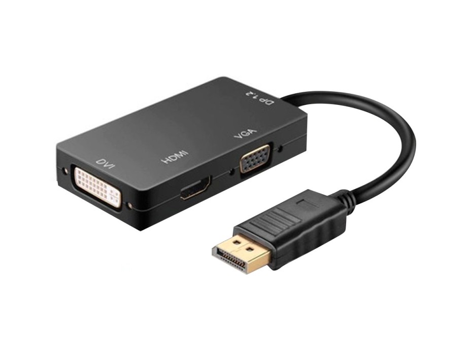 ADAPTADOR DE PUERTO DVI HDMI VGA HEMBRA -- A -- PUERTO DISPLAYPORT MACHO, CON SALIDA A HDMI, VGA, 25 CM, COLOR NEGRO ( DP - A - VGA/DVI/HD)