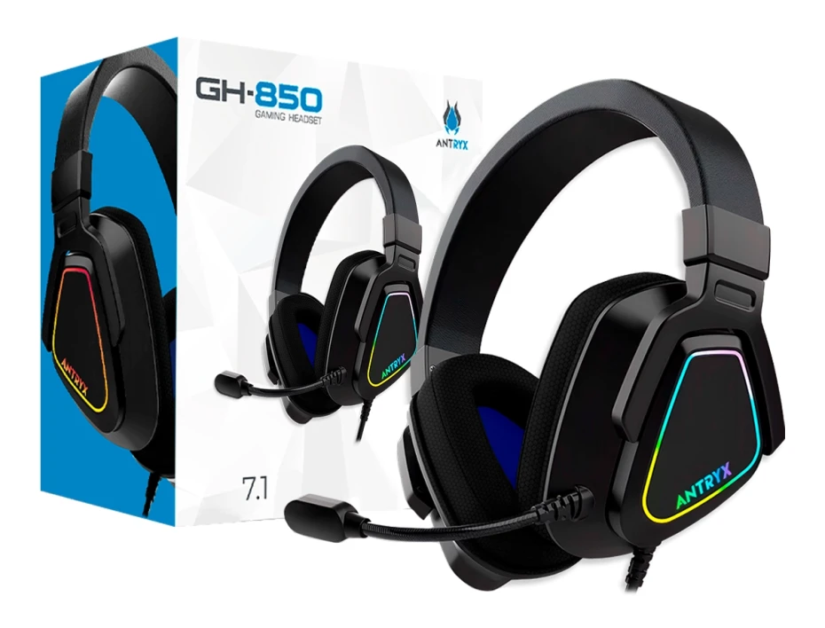 Auricular Antryx Gh-850 Rgb Gaming (agh-850bk7rv) Con Microfono, Interfaz Usb, Negro C/ Gris