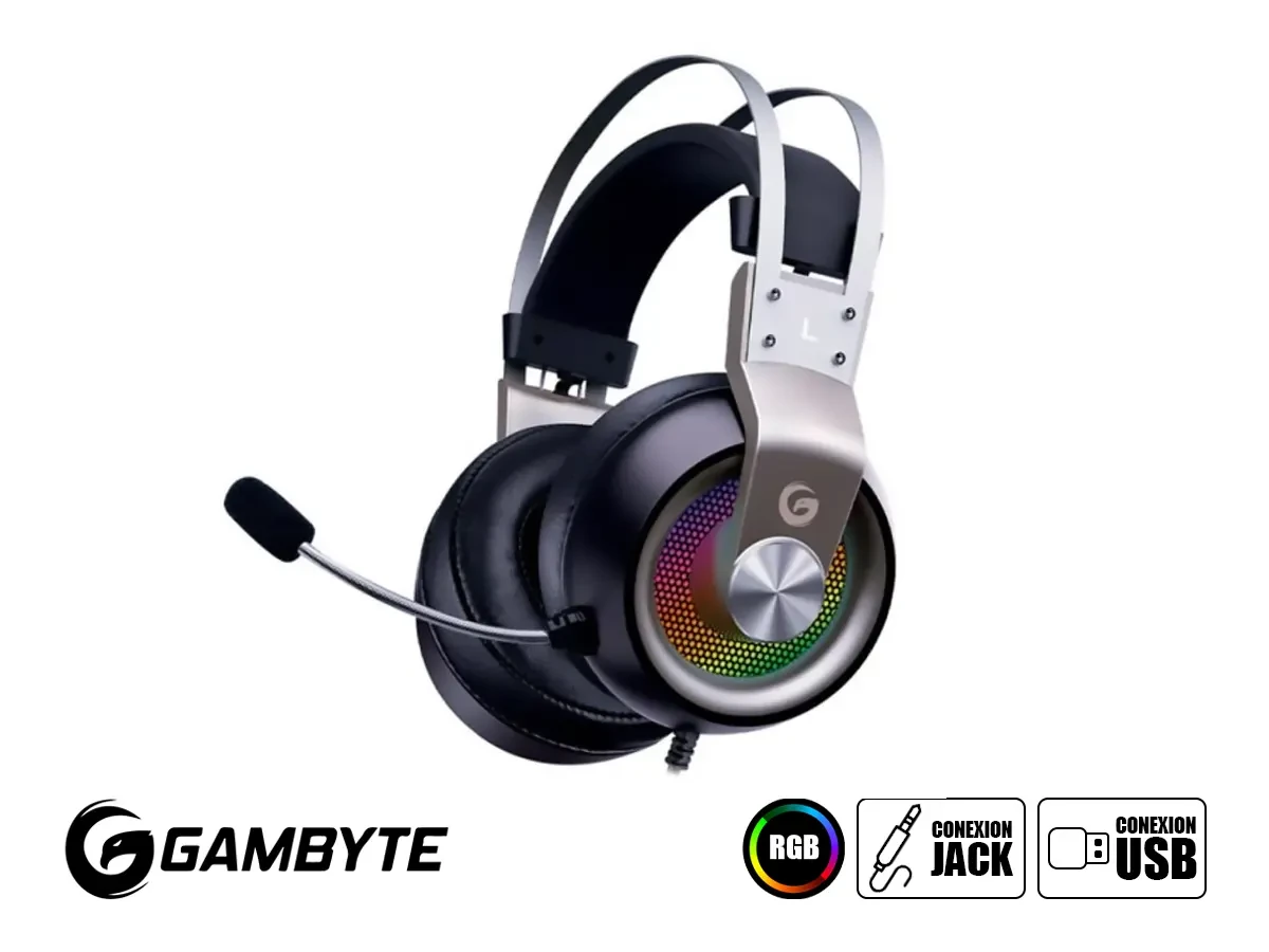 Auricular Gambyte Blood Lord Gaming 7.1 (bmbh357ah) Con Microfono, Interfaz Usb, Jack 3.5 Mm, Rgb, Gris