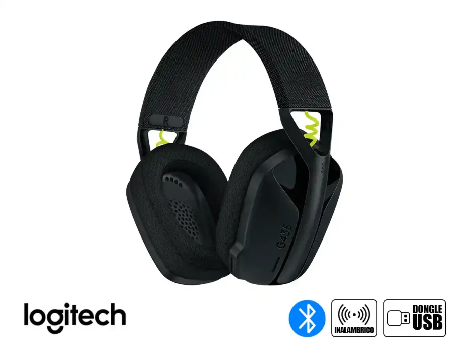 Auricular Inalambrico Logitech Lightspeed G435 Gaming (981-001049) Con Microfono, Negro C/ Amarillo