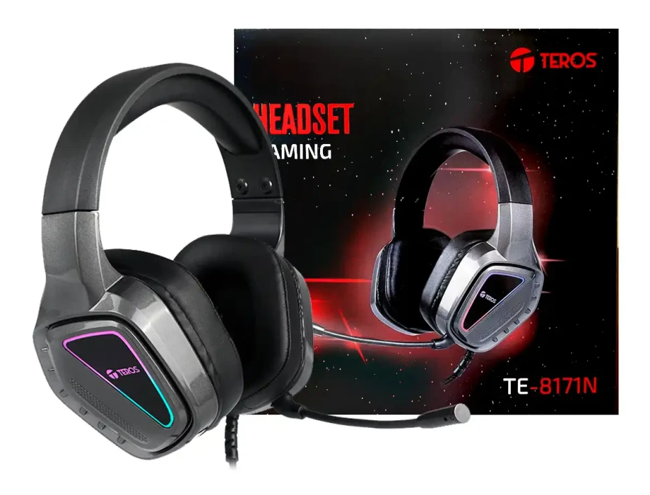 Auricular Teros Gaming 8171n (te-8171n) Con Microfono, Interfaz Usb, Rgb, Negro