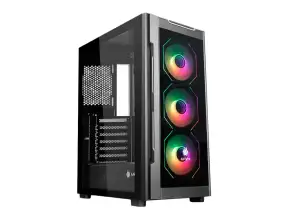 Case Antryx Rx-560 Black S/fuente (ac-rx560k) Panel De Vidrio, 3 Ventiladores, Led Argb, Negro