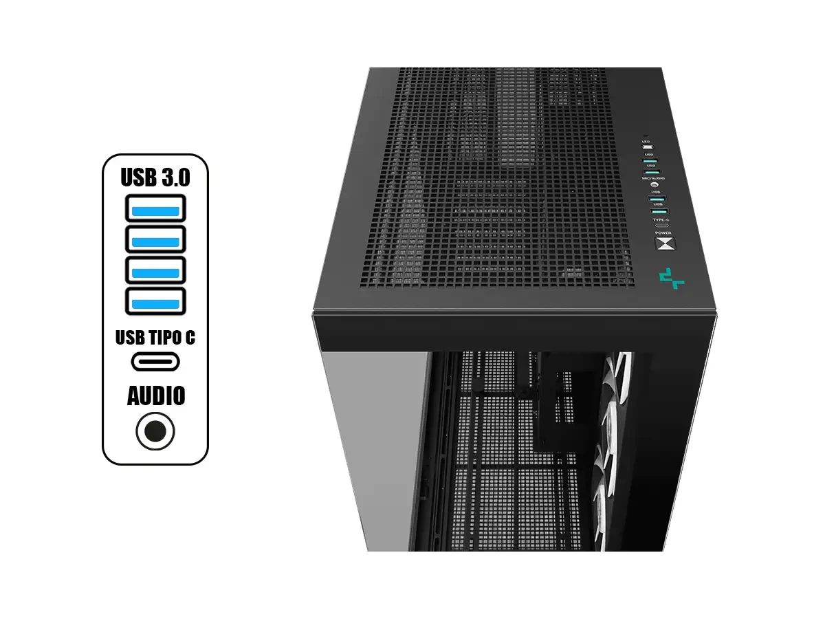 Case Deepcool Ch780 S/fuente (r-ch780-bkade41-g-1) Paneles De Vidrio, 1 Ventilador, Led Argb, Negro