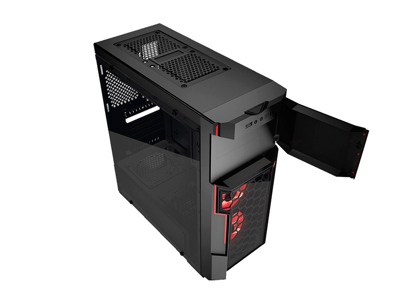 Case Gambyte Gowa S/fuente (gtt1205a-red) Panel De Vidrio, 2 Ventiladores, Led Rojo, Negro