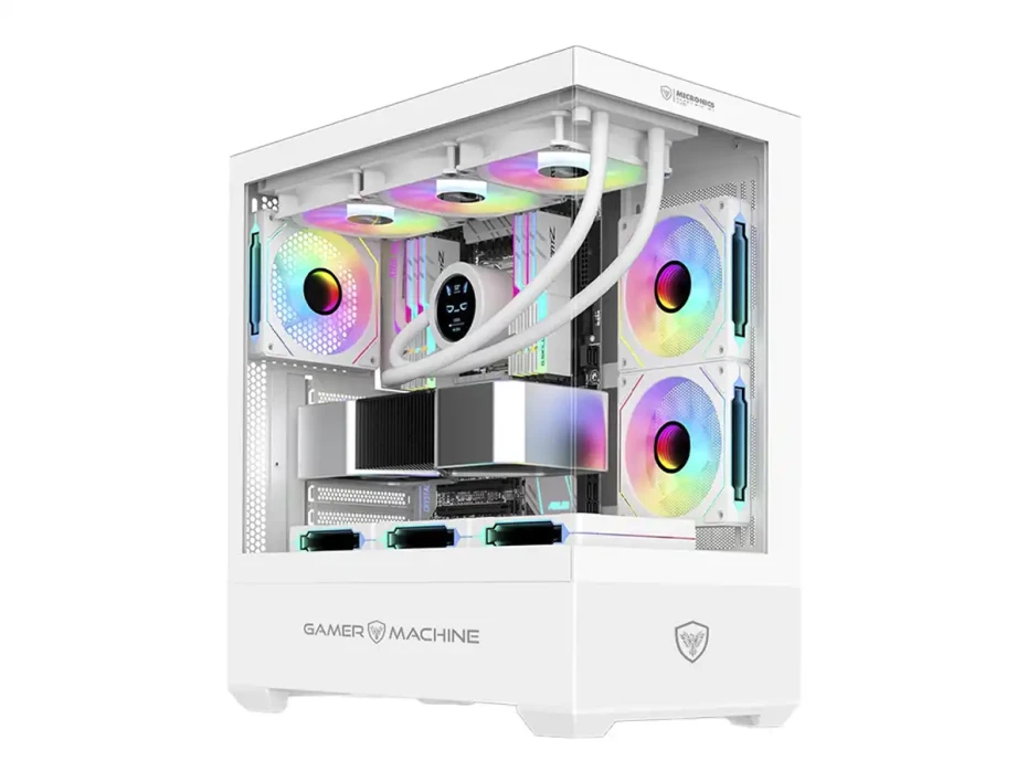 Case Micronics Gamer Machine Icube (icube Mic Gc800wh) Paneles De Vidrio, 4 Ventiladores, Led Rgb, Blanco