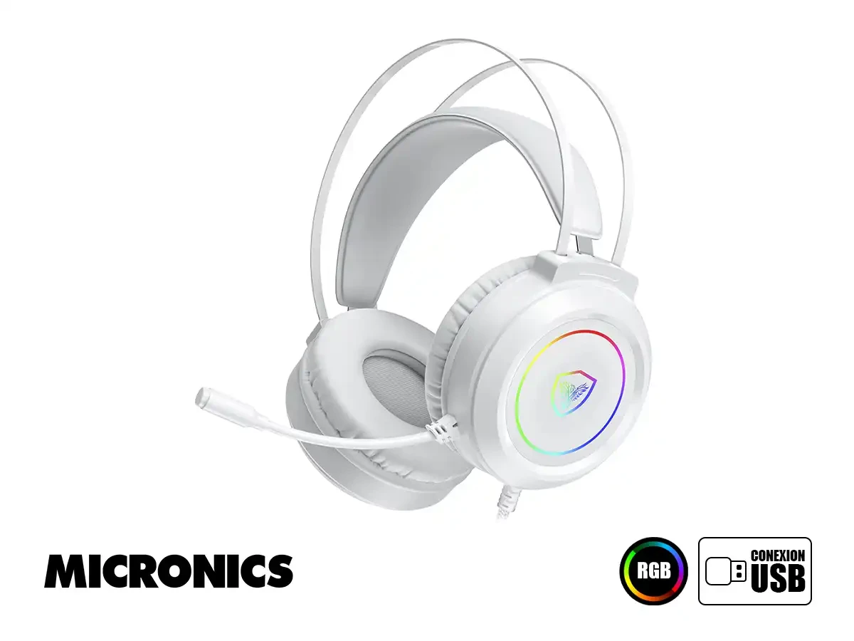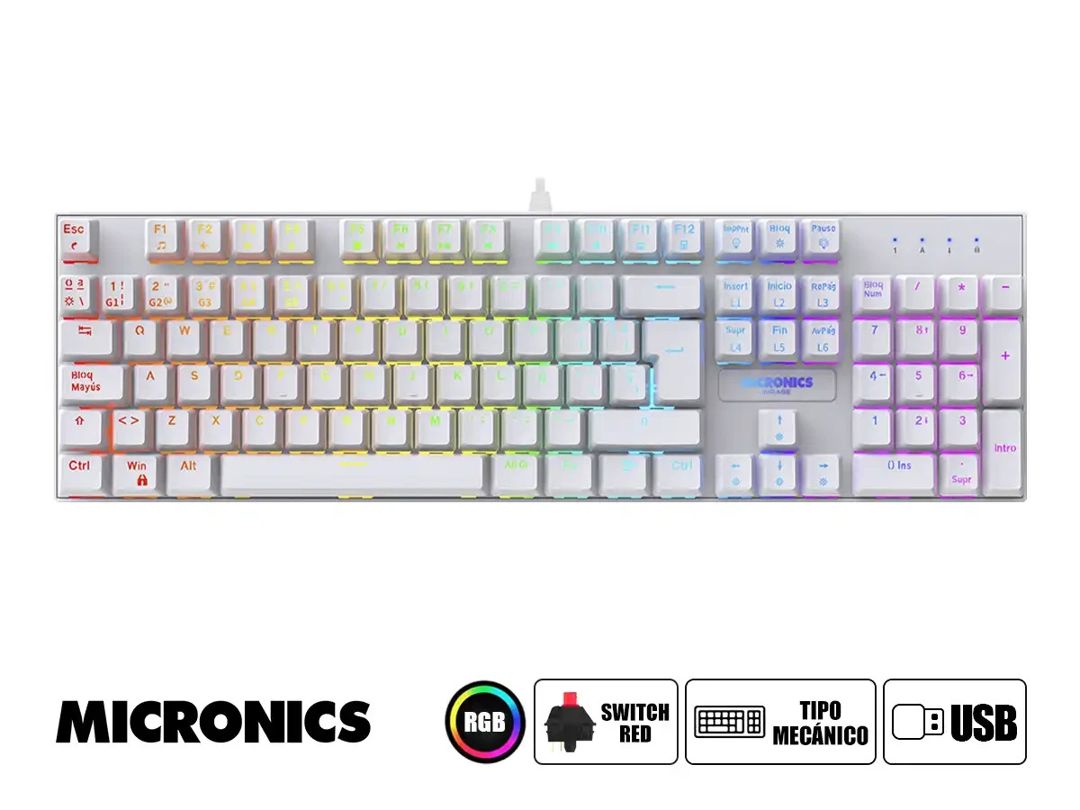 Combo 3 En Uno Micronics Mirage White (mic Gtx2003-3k) Teclado Mecanico, Mouse Hasta 12800 Dpi, Auricular Rgb Multiplataforma