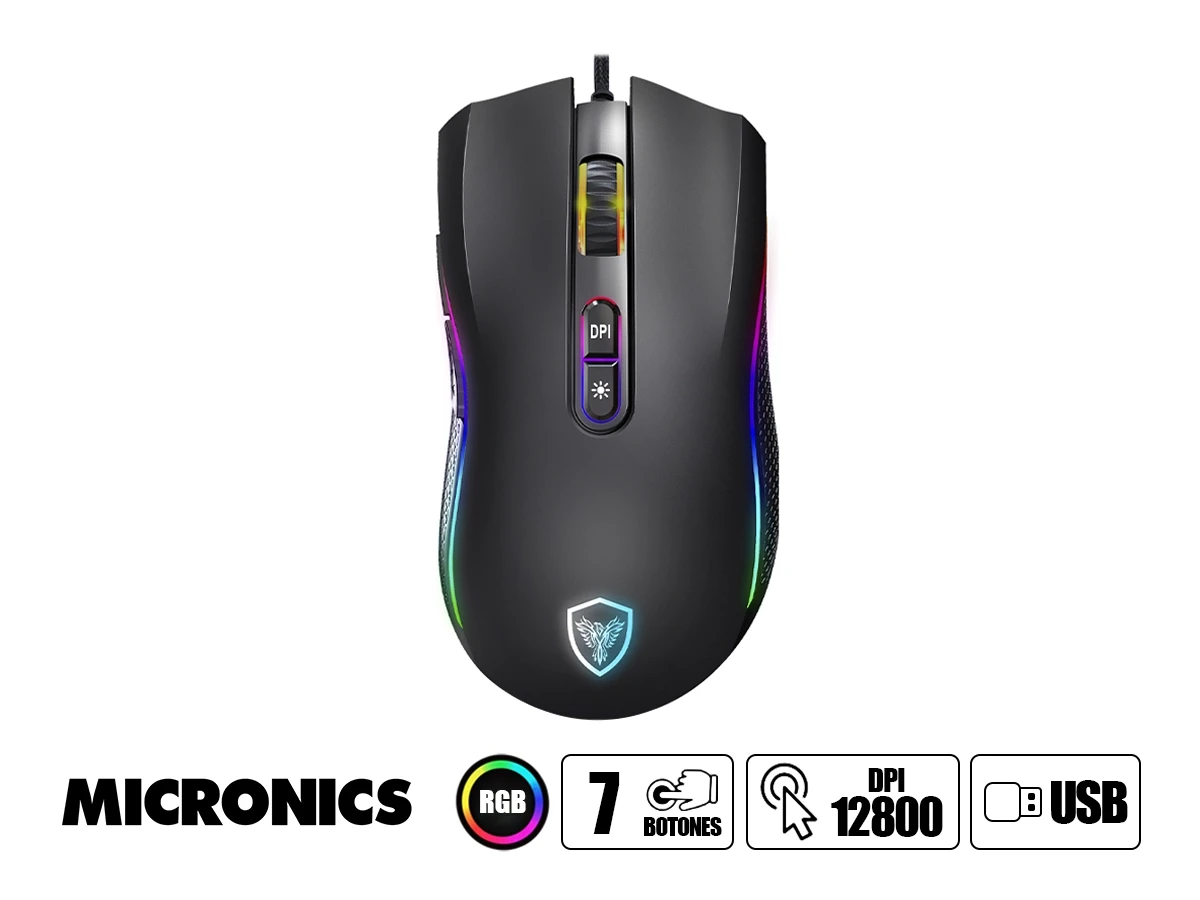 Combo 3 En Uno Micronics Player 3 Black (mic Gtx 1003) Teclado Membrana, Mouse 7 Botones, Auricular Rgb Multiplataforma