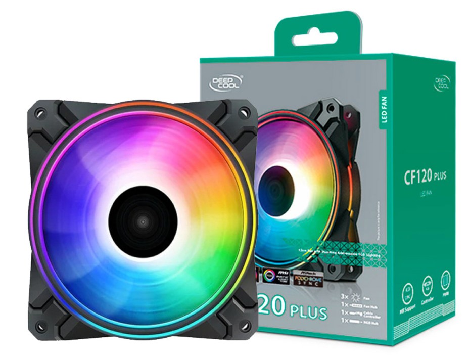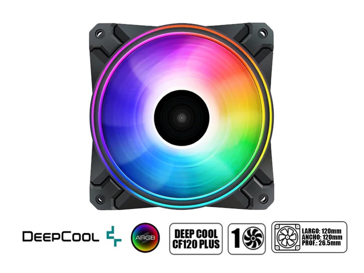 COOLER PARA CASE + MODULO DE CONTROL DEEPCOOL CF120 PLUS, CON ILUMINACION RGB, 120X120X26.5M, 4 PINES ( DP-F12-AR-CF120P-3P)