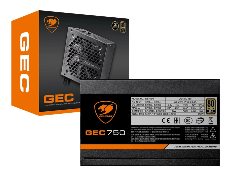 Fuente Cougar 750w Gold 80 Plus Gec 750 (31gc075.0001p) Atx, No Modular, Negro