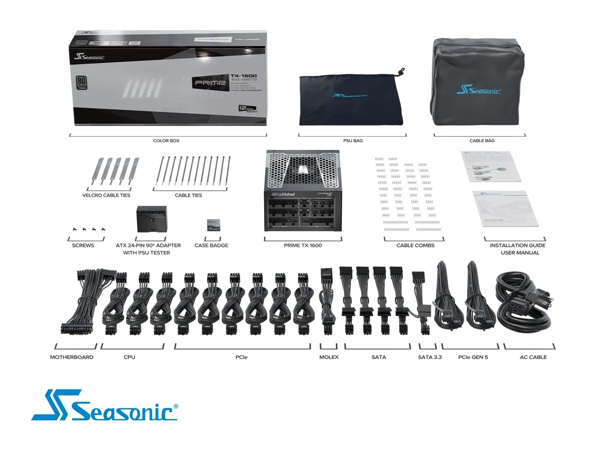 Fuente De Poder Seasonic 1600w (ssr-1600tr2) Prime Tx Atx 3.1 80 Plus Titanium Pcie Gen 5 Full Modular, Negro
