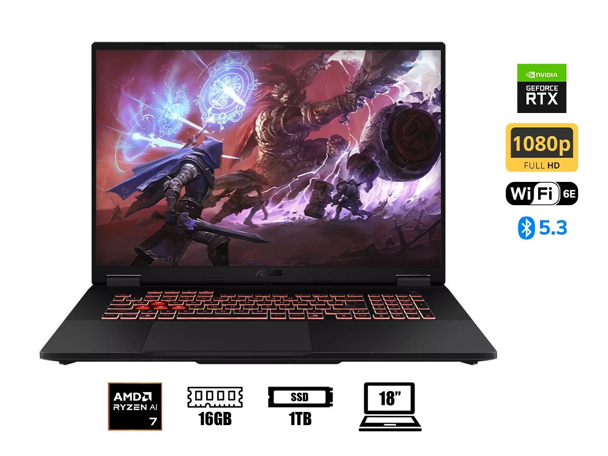 Laptop Asus Ryzen 7-260 Tuf Gaming A18 (fa808um-is74) 18” Wuxga 144hz, Ram 16gb, Ssd 1tb, Rtx 5060 8gb, Win11, Gray