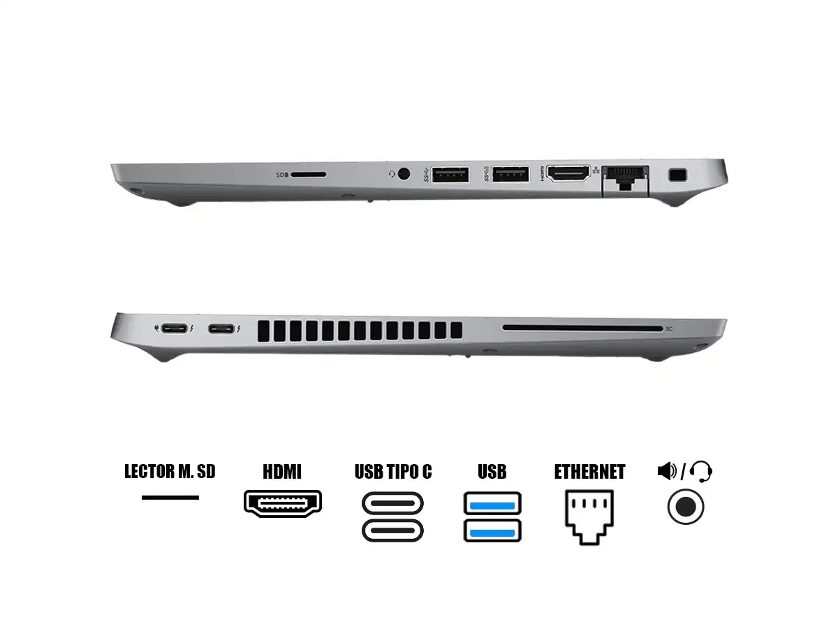 | Puertos | x1 Thunderbolt 4 Type C, x1 USB Type C, x2 USB 3.2 Gen1, x1 HDMI, x1 RJ-45, x1 Jack combo audio | x2 USB 3.2 Gen2 Type C, x2 USB 3.2 Gen2, x1 HDMI, x1 Lector micro SD, x1 Jack combo audio | x1 USB 3.0 type C, x2 USB 3.0, x1 HDMI, x1 RJ-45, x1 Lector SD, x1 Jack combo audio | x1 USB 5 Gb/s Type C, x2 USB 5 Gb/s, x1 HDMI, x1 RJ-45, x1 Lector SD, x1 Jack combo audio |