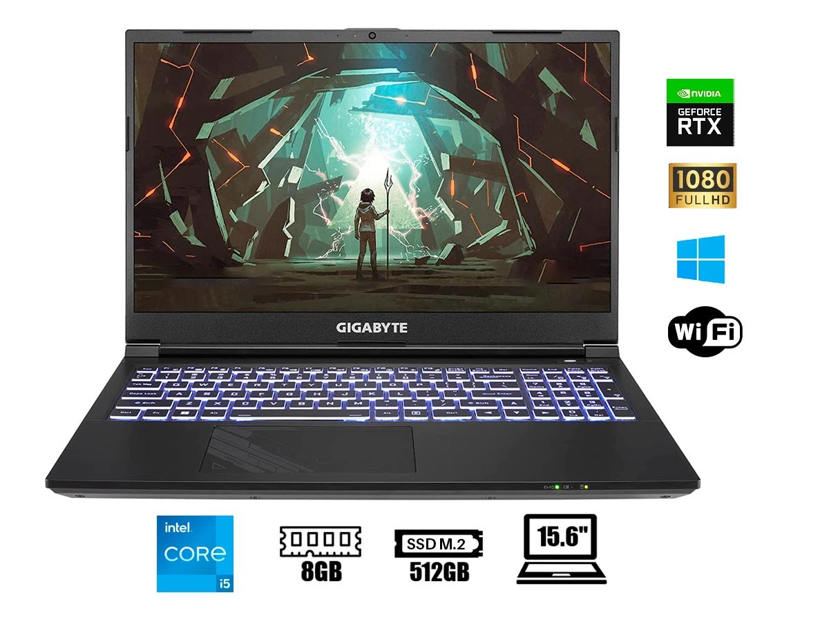 LAPTOP GIGABYTE CORE I5 12500H G5 MF GAMING (G5 MF-E2LA333SH) 15.6" FHD 144HZ | RAM 8GB | SSD M.2 512GB | RTX 4050 6GB NVIDIA | WIN11| ES.| 12G.