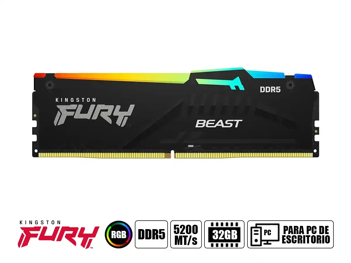 Memoria Ram Kingston Fury Ddr5 32gb Beast (kf552c40bba-32) 5200 Mt/s, Negro, Rgb