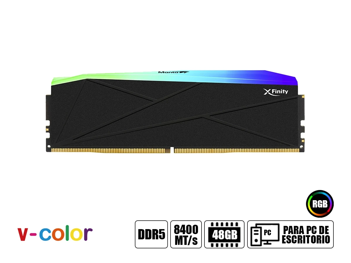 Memoria Ram V-color Ddr5 48gb (24gbx2) Manta Infinity Rgb Cudimm, Intel Xmp 3.0 (tmxfcl2484840ksk) 8400 Mt/s, Silver