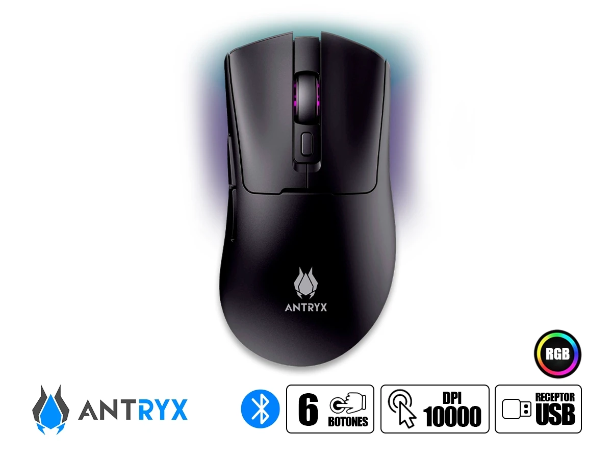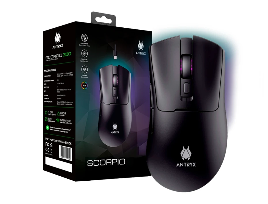 Mouse Inalambrico Antryx Scorpio 350 Gaming (awgm-s350k) Sensor Hasta 10000 Dpi, Con 7 Botones, Iluminacion Rgb, Negro