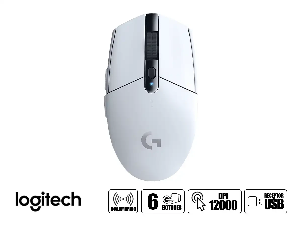 Mouse Inalambrico Logitech G305 Ligthspeed Gaming (910-005290) Hasta 12.000 Dpi, 6 Botones, Receptor Usb, Blanco