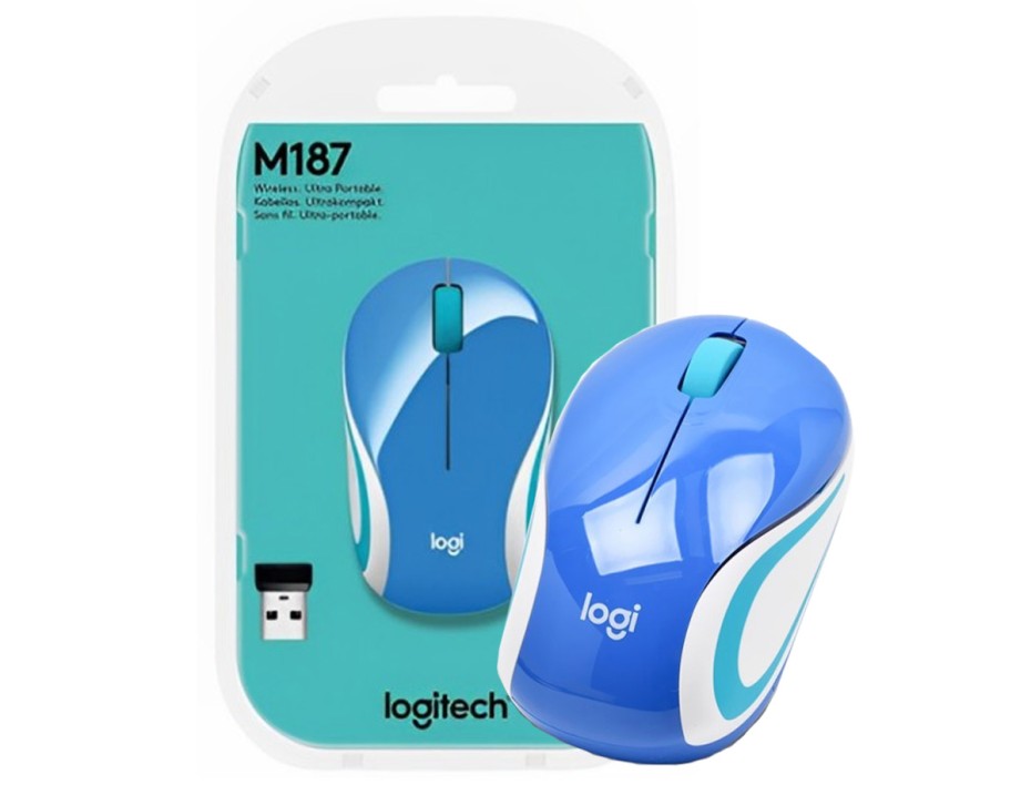 | MOUSE INALAMBRICO LOGITECH M187, HASTA 1000 DPI, CON RECEPTOR USB, DISEÑO ERGONOMICO, 3 BOTONES, AZUL C/ BLANCO+CELESTE (910-005360) | Mouse Klip Mini Retractil (kmo-103) Hasta 800 Dpi, 3 Botones, Negro Con Plomo | Mouse Logitech M90 (910-004053) Hasta 1000 Dpi, 3 Botones, Negro | Mouse Avatec Retractil (cms-2097pk) Retractil | |