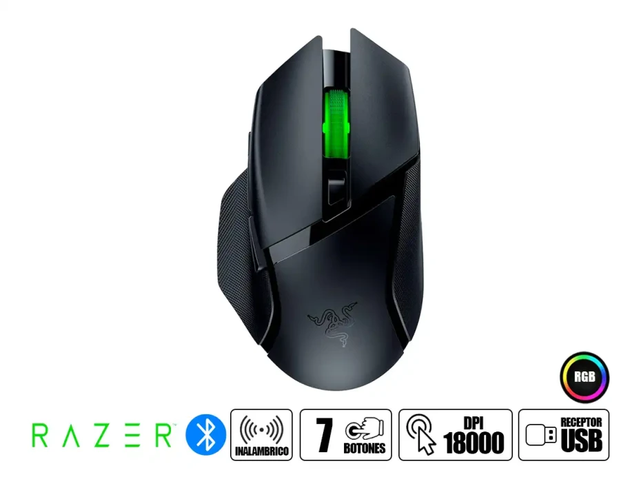 Mouse Inalambrico Razer Basilisk V3 X Hyperspeed Gaming (rz01-04870100-r3u1) 18.000 Botones, 7 Botones, Receptor Usb, Bt, Rgb, Negro