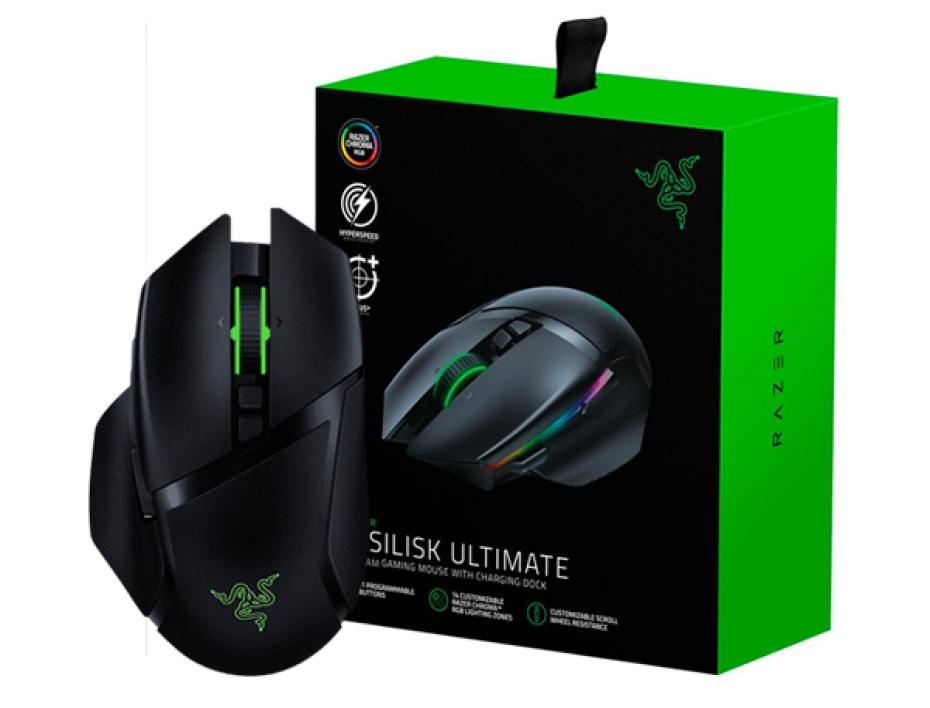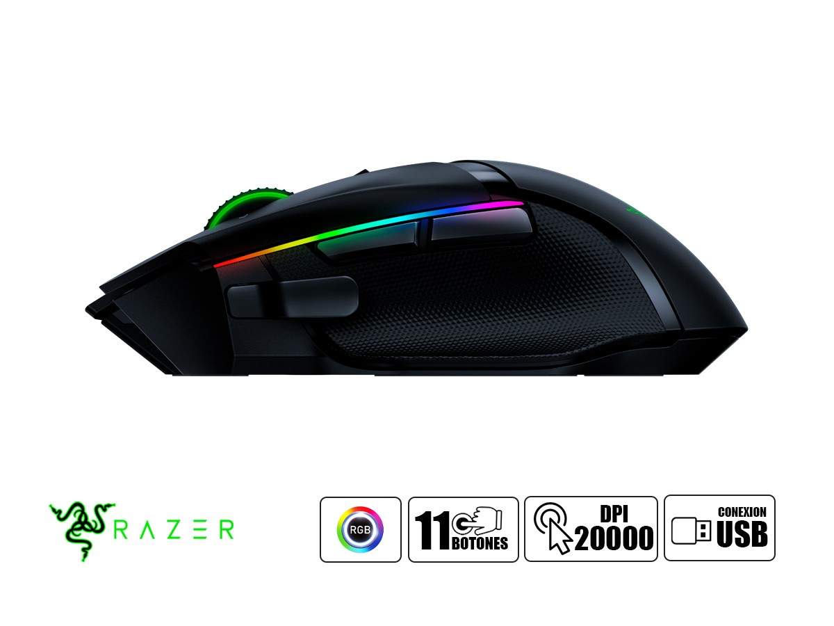 MOUSE RAZER BASILISK ULTIMATE GAMING, SENSOR HASTA 20000 DPI, ILUMINACION RGB, CON 11 BOTONES PROGRAMABLES, CONEXION USB, COLOR NEGRO (RZ01-03170100-R