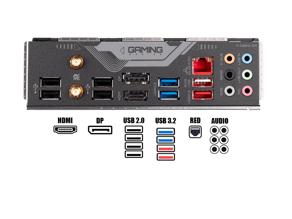 | Entradas USB/PS2 : | 1 x puerto USB Type-C ® , 1 puerto USB 3.2 Gen 2 tipo A , 4 puertos USB 3.2 Gen 1, 1 puerto USB 2.0 |