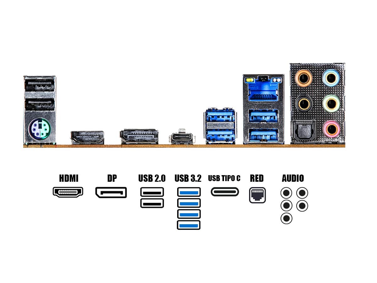 | Entradas USB/PS2 : | 4 USB 3.2(Gen1), 2 USB 2.0, 1 USB 3.2 (Type-C), 1 PS/2 para teclado/mouse |