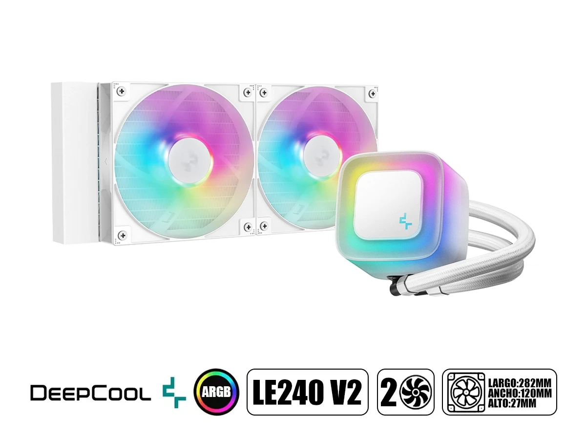 Sistema De Enfriamiento Liquido Deepcool Le240 Wh V2 (r-le240-whammn-g-2) 2 Ventiladores, 240mm, Led Argb