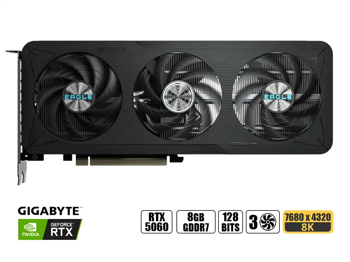 Tarjeta De Video Gigabyte Geforce Rtx 5060 8gb Eagle Max Oc Gddr7 (gv-n5060eagle Oc-8gd) Nvidia 128 Bits, 3 Ventiladores