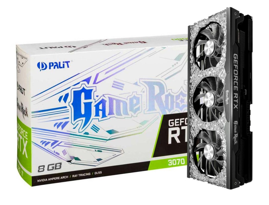 TARJETA DE VIDEO PALIT GAMEROCK RTX 3070 TI 8GB GDDR6X GEFORCE NVIDIA 256 BITS, GRAFICO PARA VIDEOJUEGOS, 3 VENTILADORES (NED307T019P2-1047G)