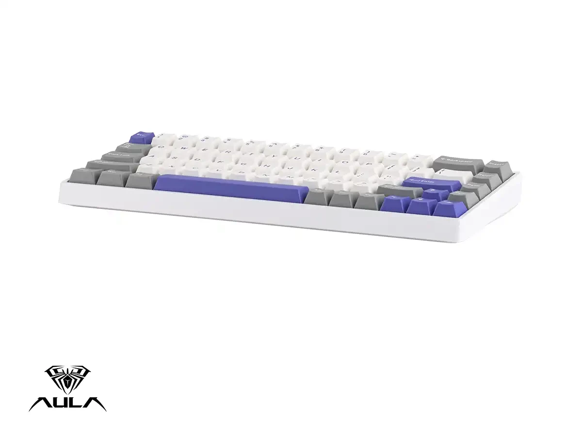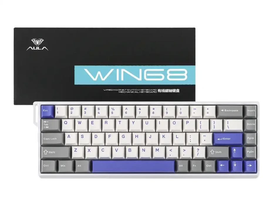 Teclado Gamer Aula Win68he Max 65% Magnetico (au-w68hem4en7) Mecanico, Switch Magnetico Wing Chun, Color Blanco, Plomo Y Purpura