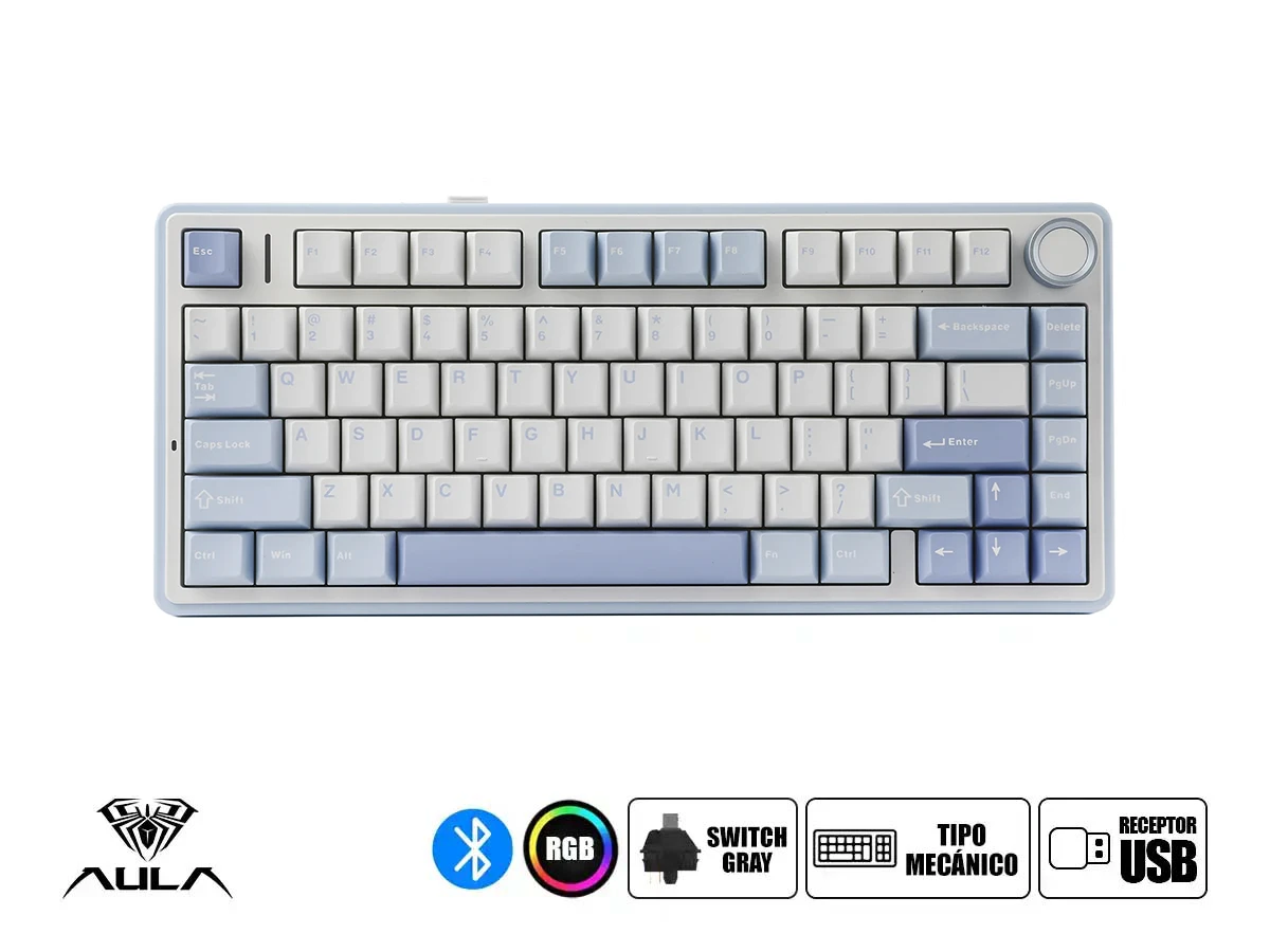 Teclado Gamer Inalambrico Aula F75 (au-f75w13en4) Mecanico, Switch Gray, Blanco+blue+dark Blue