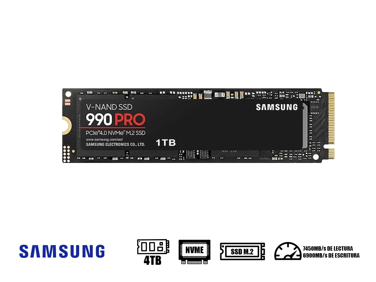 Unidad De Almacenamiento Ssd M.2 Pcei Samsung 4tb 990 Pro, 2280 (mz-v9p4t0b/am) Hasta 7450 Mb/s
