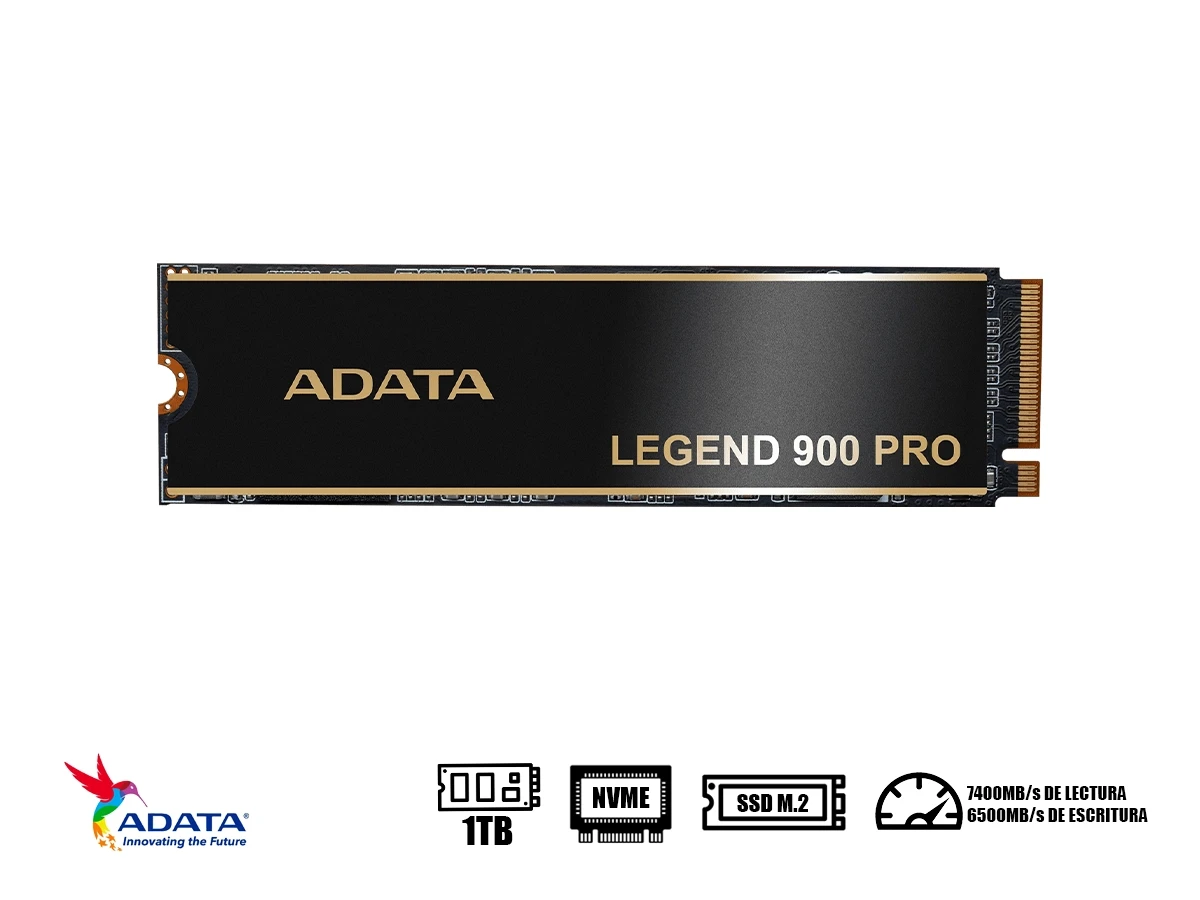 Unidad De Almacenamiento Ssd M.2 Pcie Adata 1tb Nvme Legend 900 Pro, 2280 ( Sleg-900p-1tcs) Hasta 7400mb/s De Lectura Con Discipador