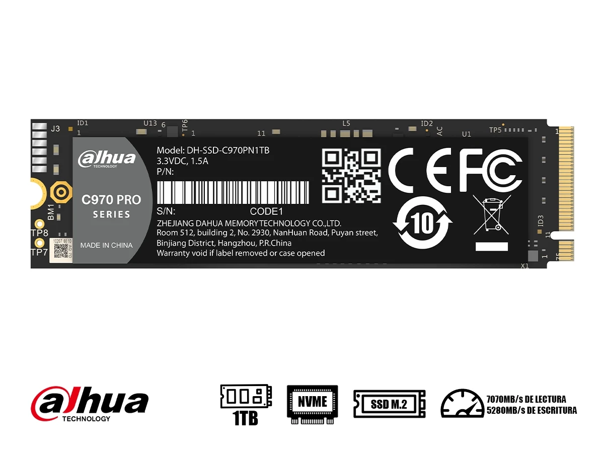 Unidad De Almacenamiento Ssd M.2 Pcie Dahua 1tb Nvme C970 Pro (c970n1tb) Hasta 5380mb/s De Lectura